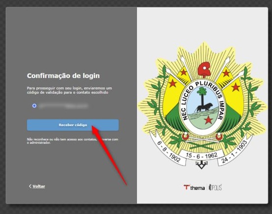 Após clicar em Entrar, aparecerá uma tela de confirmação de login com o email cadastrado no GRP para recebimento do código MFA